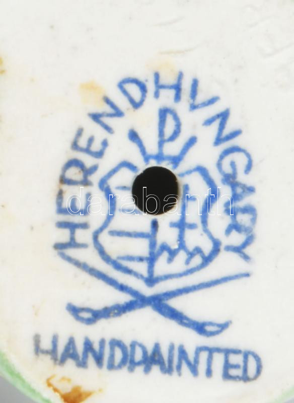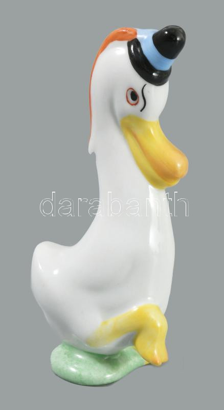 Herendi pipázó kacsa. Kézzel festett. Jelzett, hibátlan. m: 9,5 cm
