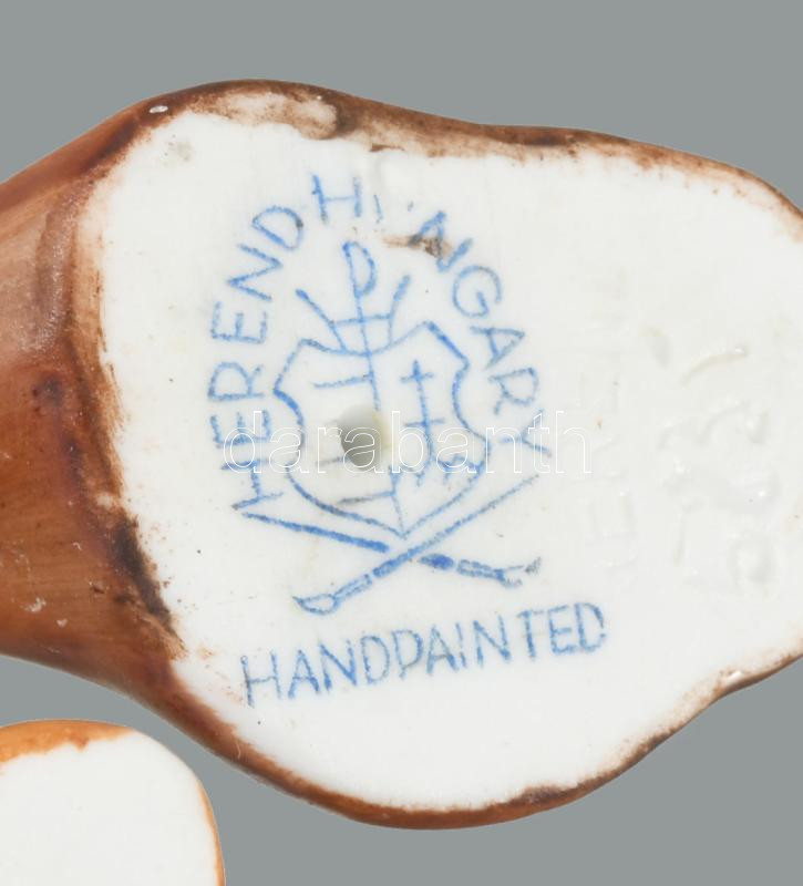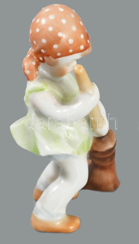 Herendi porcelán sepregető lányka, kézzel festett, jelzett, hibátlan, m: 9,5 cm