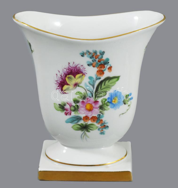 Herendi virágmintás laposváza, jelzett, kis ütődésnyommal, m: 13 cm