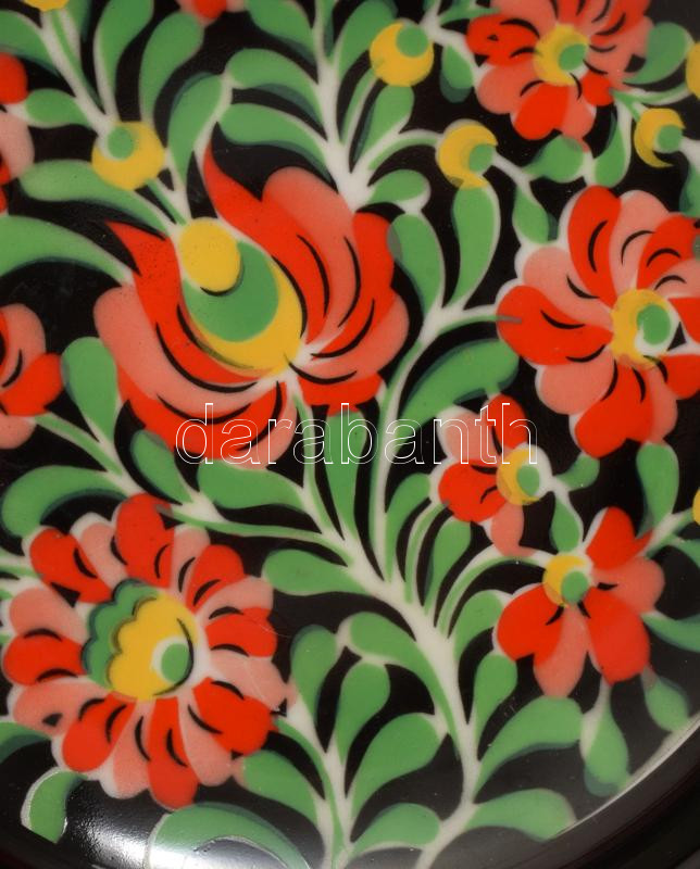 Hollóházi népi mintás dísztál. Kézzel festett, jelzett, hibátlan d : 24 cm