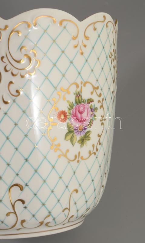 Hollóházi rózsa mintás kaspó. Kézzel festett, jelzett, hibátlan d: 21 cm, m. 20 cm