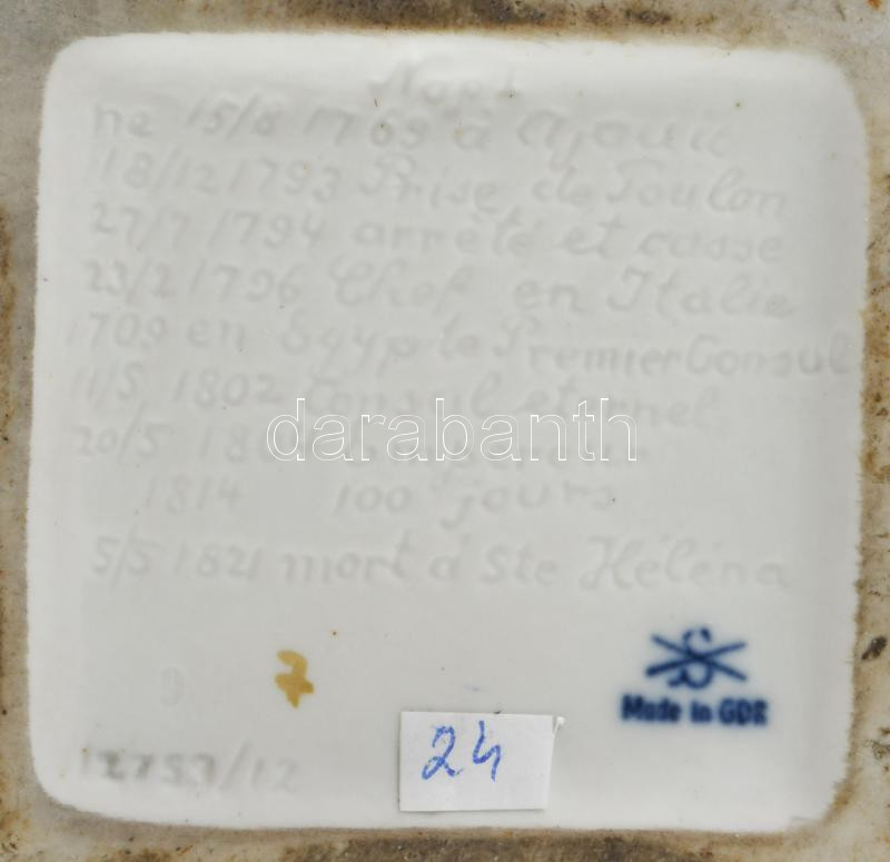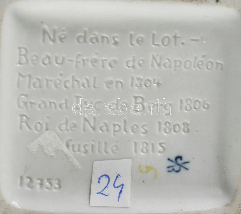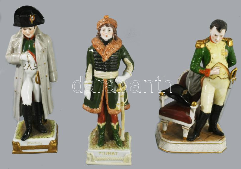 Kämmer Volkstedt Napóleon figura + Porzellanmanufaktur Kister Napóleon figura + Porzellanmanufaktur Kister Joachim Murat figura. Jelzettek, 1-1 sérüléssel, repedéssel, m. 24 cm alatt