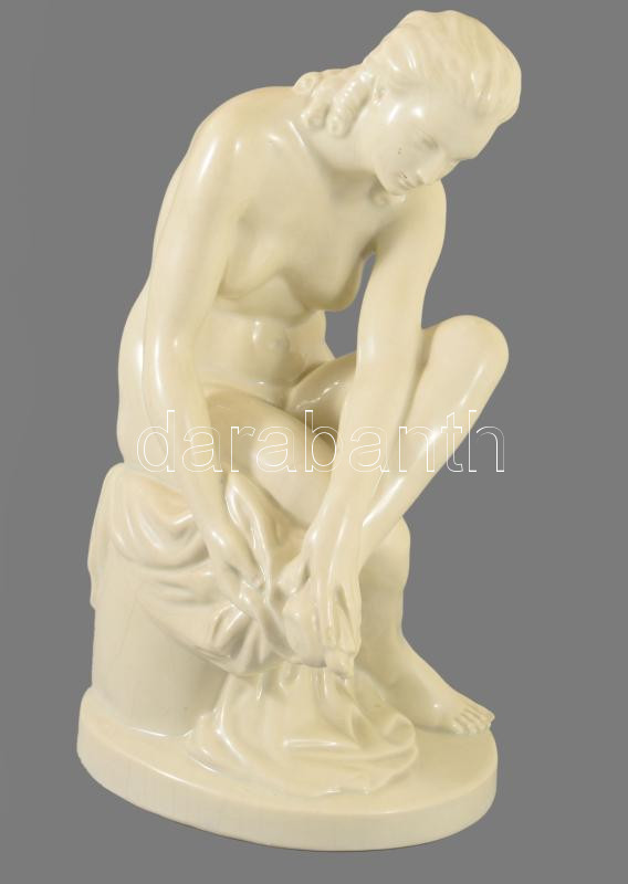 Kisfaludy Strobl Zsigmond (1884-1975): Törölköző női akt. Jelzett, mázrepedéssel, alján egy lepattanással, m: 31 cm