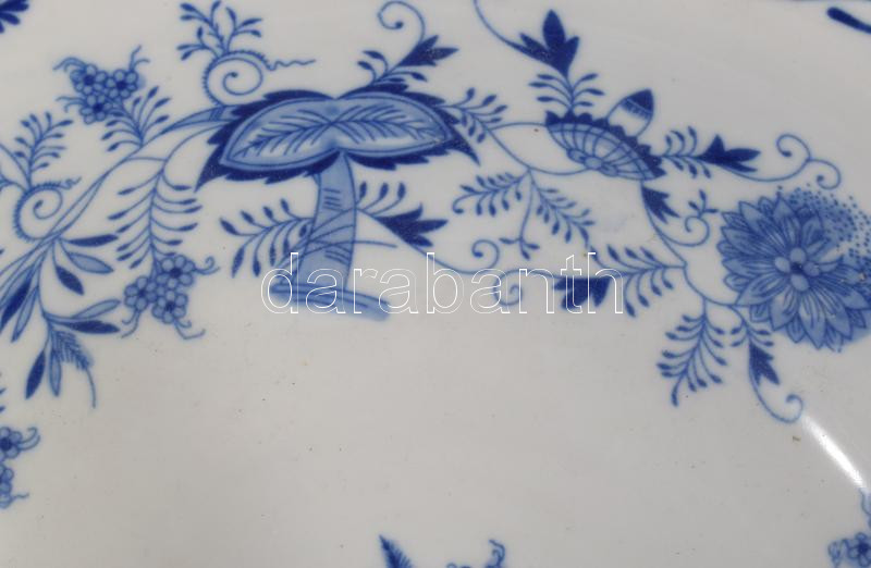 Nagyméretű máz alatti kobalt festésű hagymamintás kínáló, jelzett, hibátlan, d: 30,5 cm, m: 9,5 cm