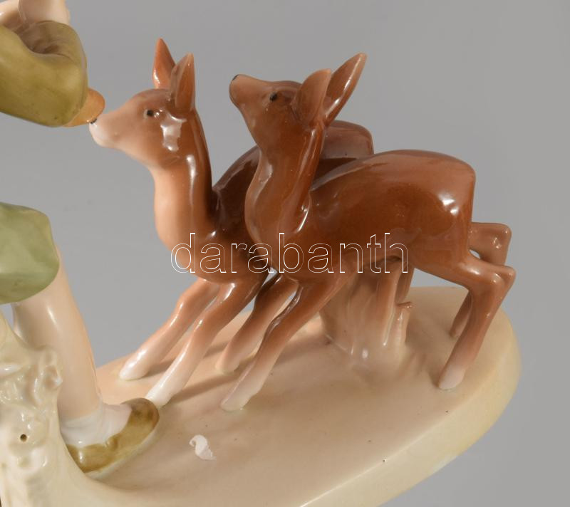 Pirkenhammer gidáknak furulyázó porcelán szobor. Kézzel festett, jelzett, hibátlan 13x17 cm