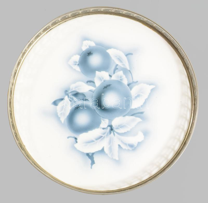Reggeliző fajansz tálca, fém szegéllyel d: 18 cm