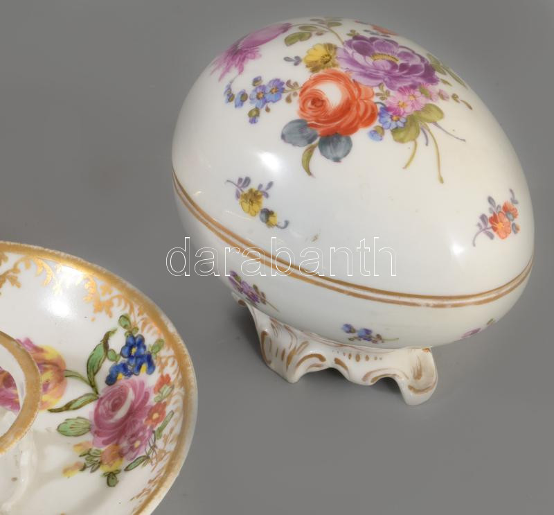 Régi bonbonier, cukortartó, mécsestartó, közte Alt wien, kopással, jelzett, d: 13 cm alatt
