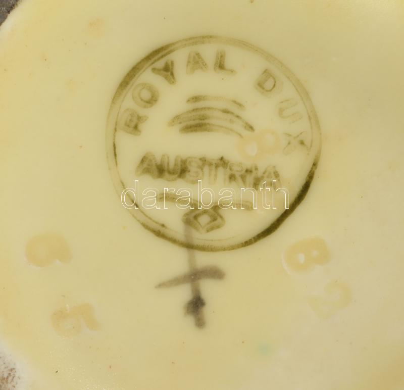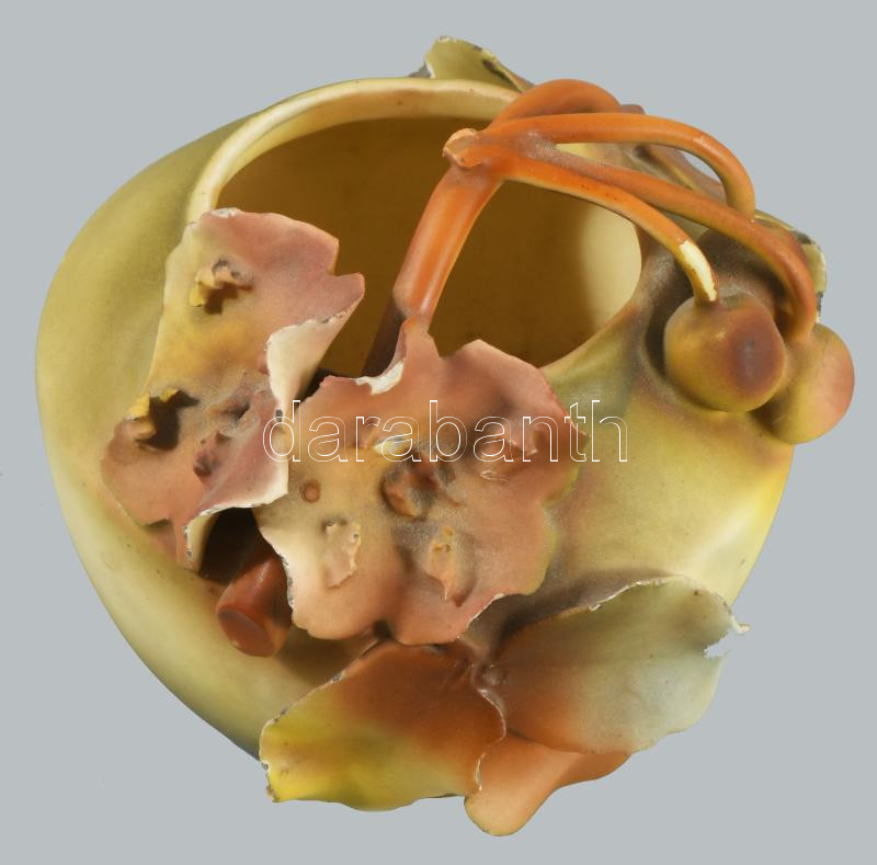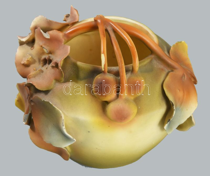 Royal Dux szecessziós váza, palsztikus növénymintás díszítéssel, jelzett, sérüléssel, m:11 cm