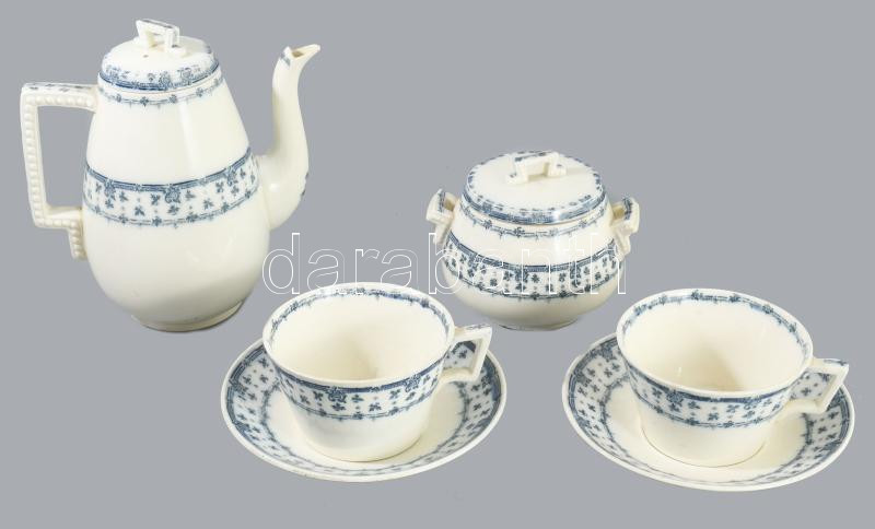 Stanley szecessziós angol kiöntő, cukortartó és 2 darab csésze alátéttel, jelzett, kopással, m:20 cm alatt
