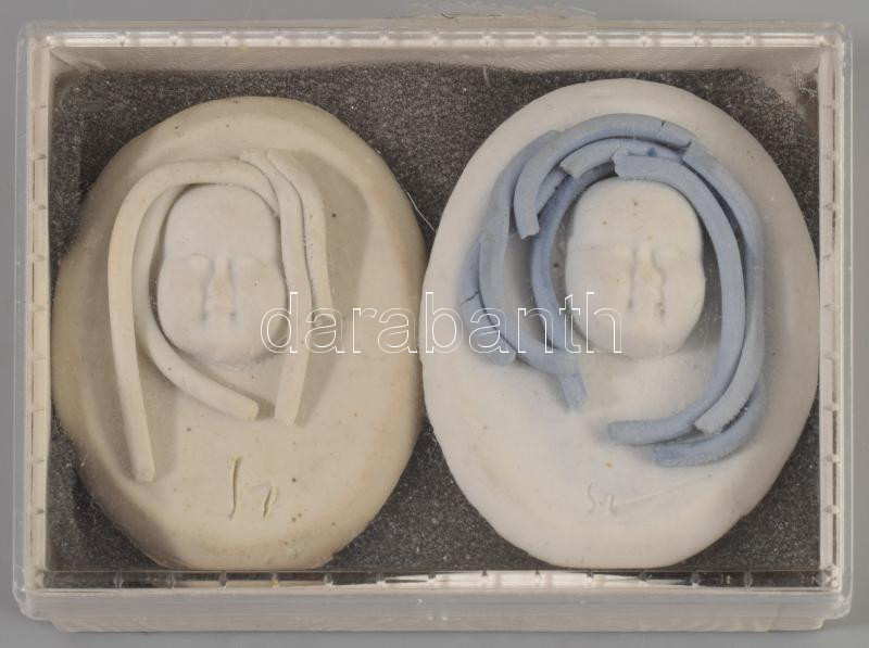 Szávoszt Katalin (1941- ): 2 darab női arc plakett, jelzett, cca 5x4 cm