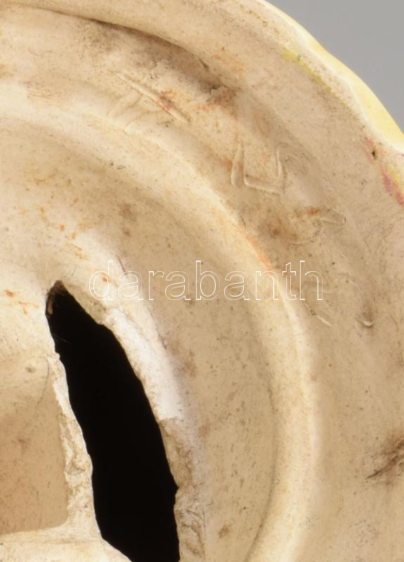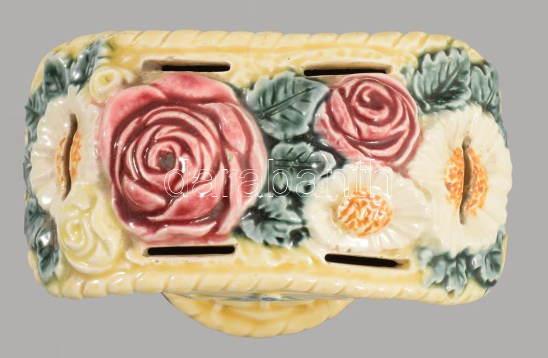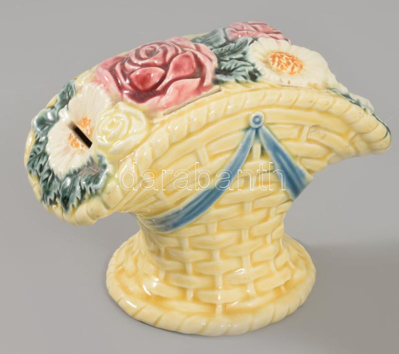 Szecessziós majolika persely, sérüléssel, 12x9 cm