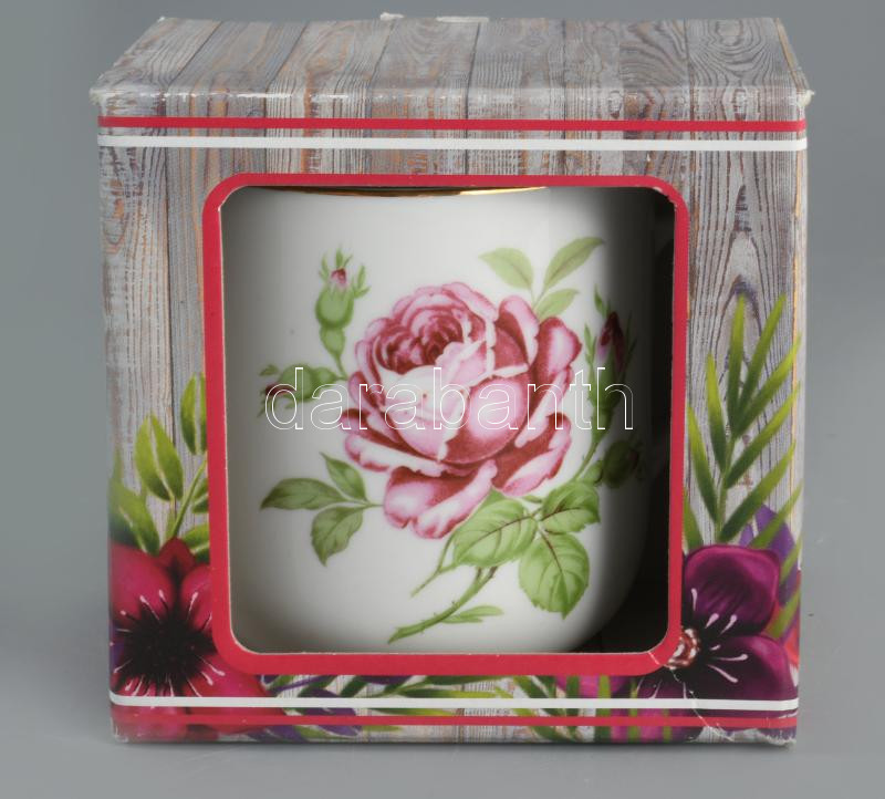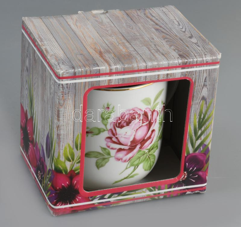 Virágmintás porcelán bögre, bontatlan dobozában.