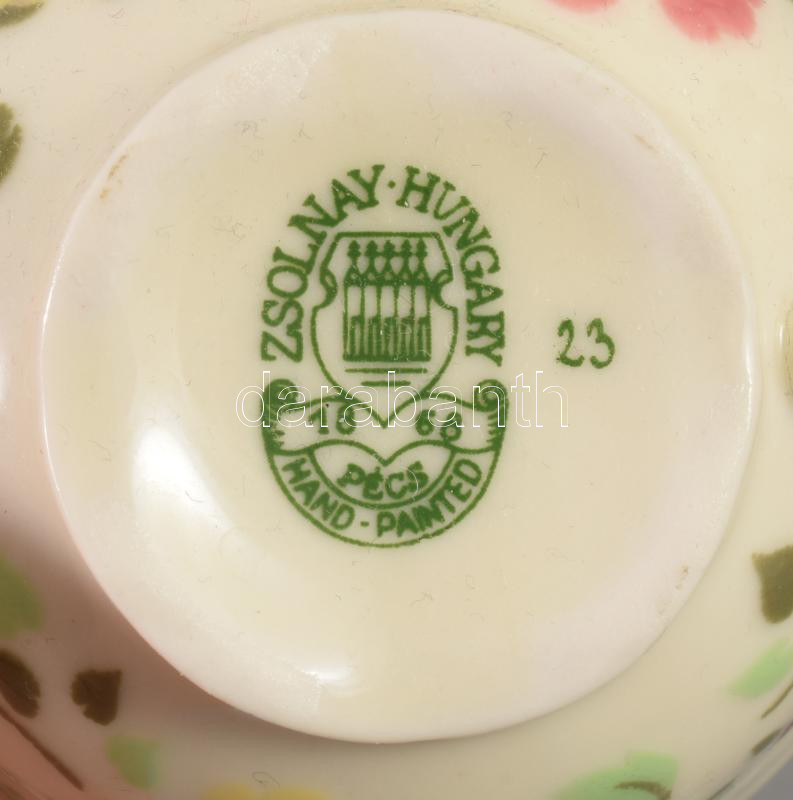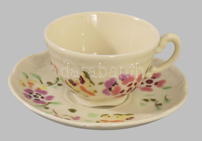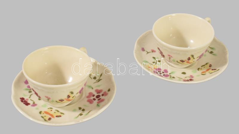 Zsolnay 2 darab pillangó mintás csésze alátéttel, jelzett, kis kopással, d: 12 cm