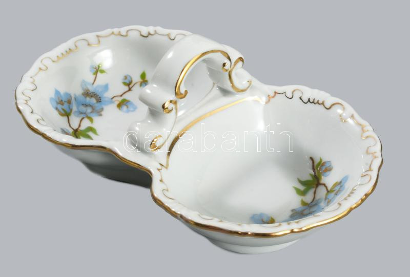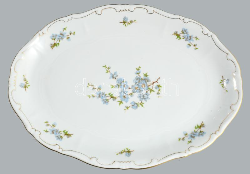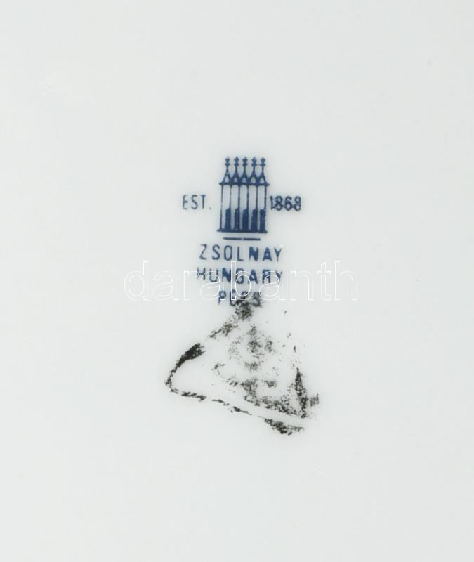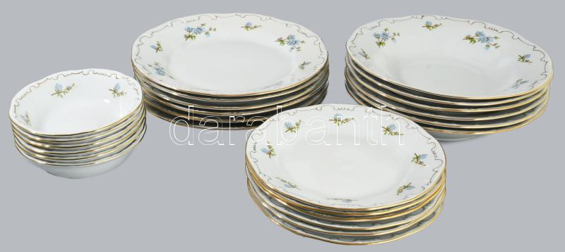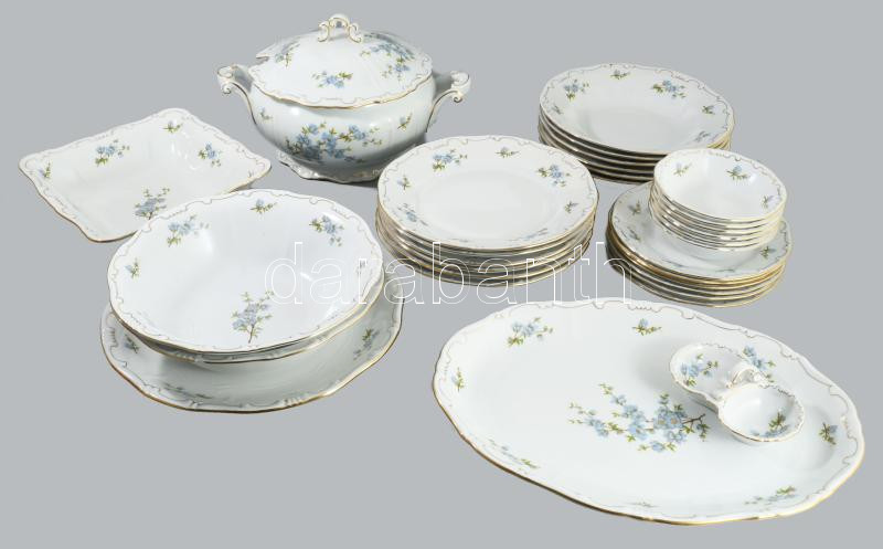 Zsolnay 6 személyes 31 részes kékvirág mintás, tollazott peremű étkészlet, jelzett, hibátlan.