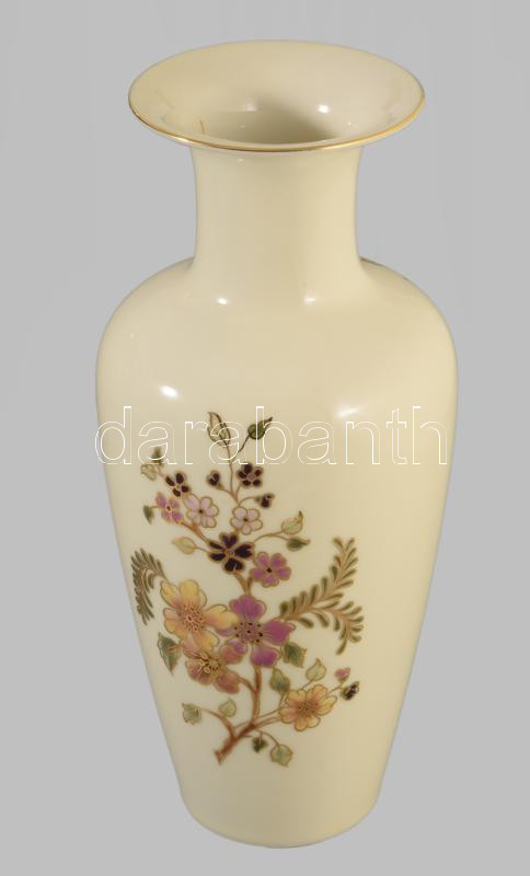 Zsolnay aranykontúrozott virágmintás váza, jelzett, hibátlan, m: 27 cm