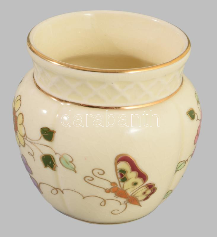 Zsolnay pillangó mintás váza, jelzett, hibátlan, m: 7 cm