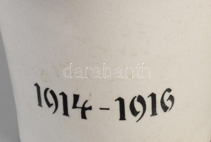 cca 1915 Porcelán hadi mozsár, m: 12 cm, törő h: 19 cm