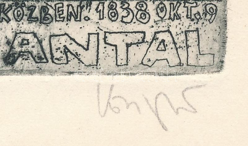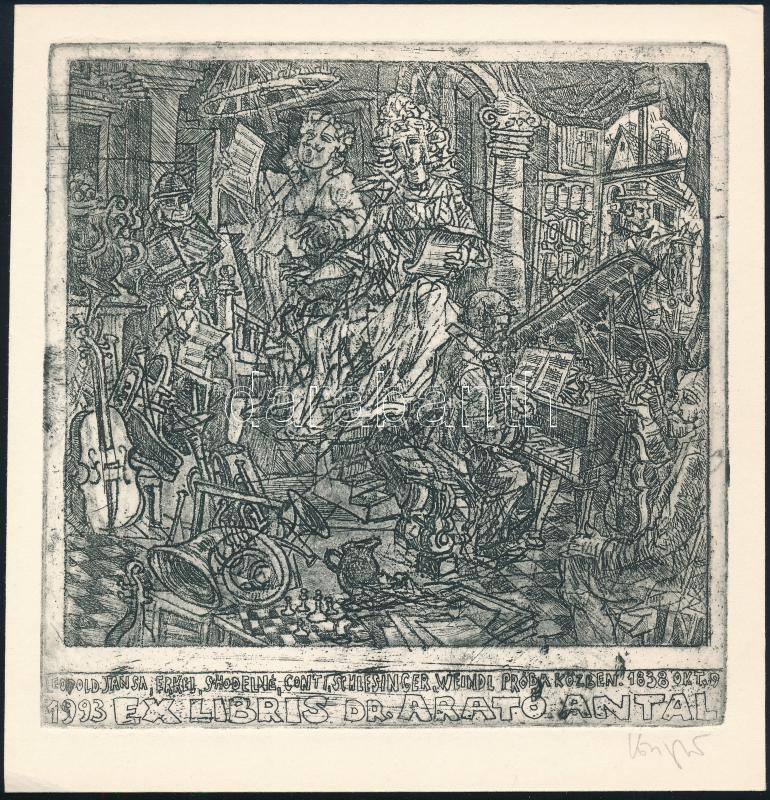 König (Kőnig) Róbert (1951-2014): Ex libris Arató Antal. Rézkarc, papír, jelzett, 14x14 cm