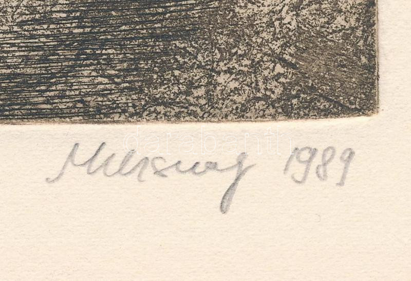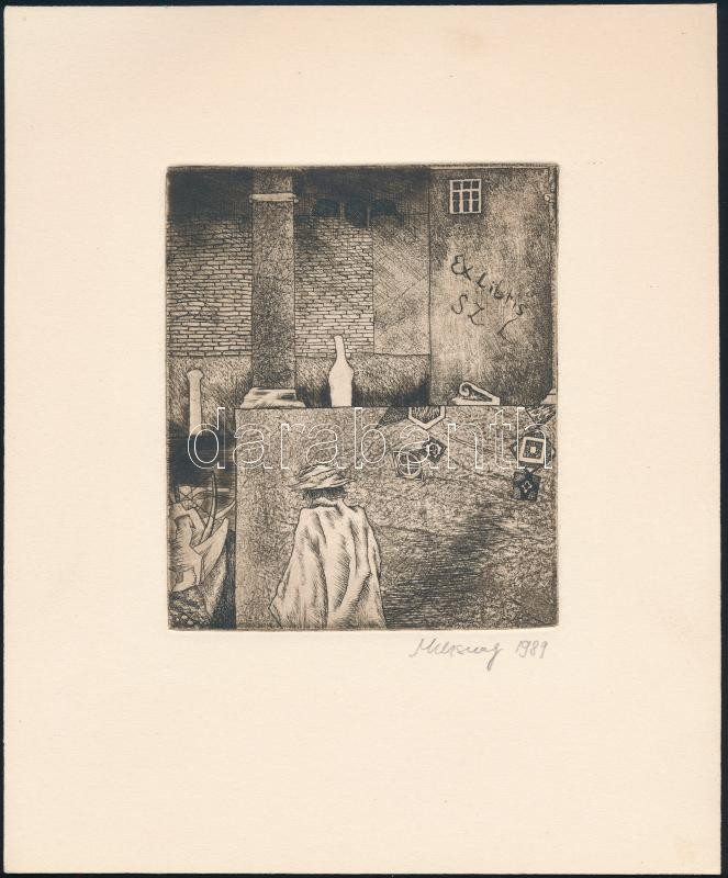 Muzsnay Ákos (1945-): Ex libris Sz. L:, 1989. Rézkarc, papír. Jelzett. Hátoldalán paszpartuzás nyomaival. 11,5×9,5 cm