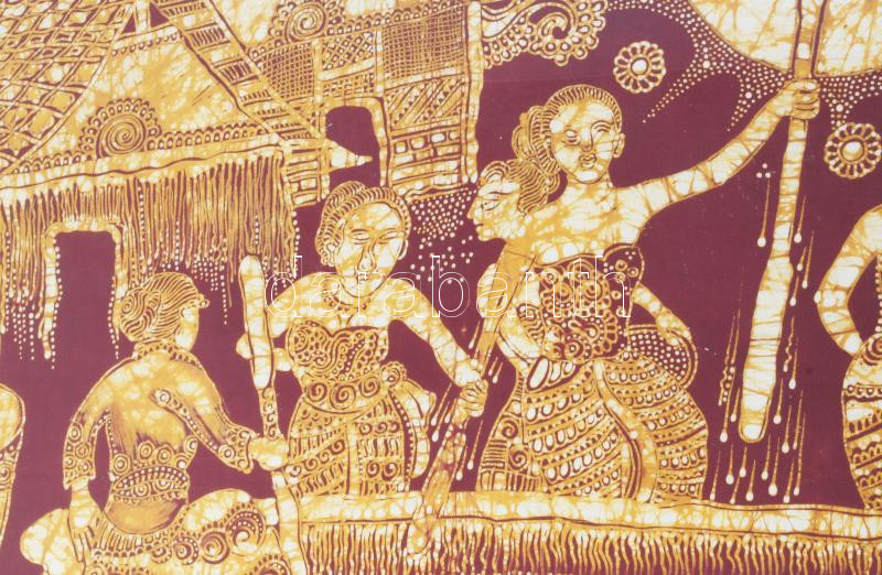 Olvashatatlan jelzéssel, feltehetően ázsiai alkotó: Jelenet, 1975. Vegyes technika, selyem. Üvegezett fakeretben, 65×88 cm