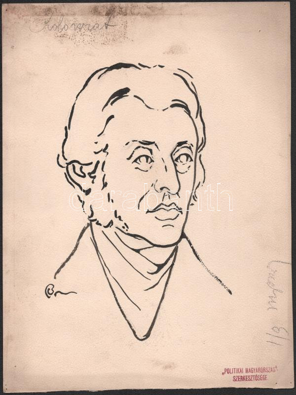 Bardócz Árpád (1882-1938): Franz Anton von Kolowrat-Liebsteinsky, gróf (1778-1861) osztrák politikus, államminiszter. Tus, papír. Jelzett. A Politikai Magyarország c. lapban megjelent grafika. Foltos. Lapméret: 31x24 cm