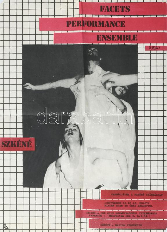 cca 1982-83 Szkéné Színház, 4 db plakát, papír, hajtásnyomokkal, részben apró lapszéli szakadásokkal, 30x21 és 35x25 cm közötti méretekben