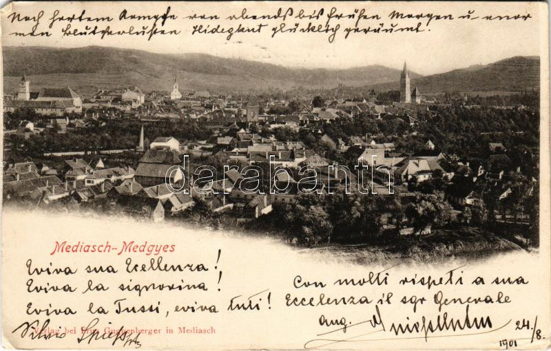 1901 Medgyes, Mediasch, Medias; látkép. Fritz Guggenberger kiadása / general view (EK)