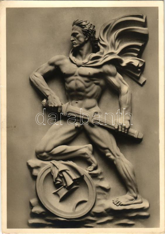 Berlin; Arno Breker: "Der Wachter" / "Az őrző" relief, Harmadik Birodalom / German sculptor, "The guardian" sculpture, Third Reich. photo Berolina (EK)