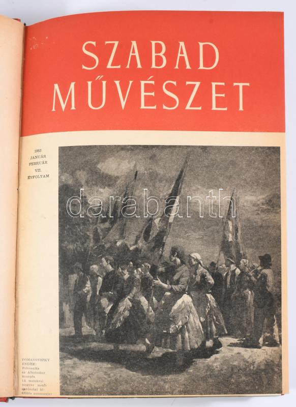 1953 Szabad Művészet. A Magyar Képző- és Iparművészek Szövetségének folyóirata. VII. évf. 1-6. sz. 1953. január-december. [Teljes évfolyam, egybekötve.] Bp., Révai-ny., 304 p. Félvászon-kötésben.
