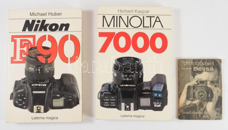 3 db - Kaspar, Herbert: Minolta 7000. + Nikon F90. + So photographiert man mit der Bessa. Kiadói papírkötés, jó állapotban.