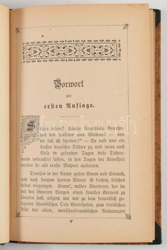 (vízkúra) Oertel, Friedrich: Pfarrer Sebastian Kneipps Kraftnährmittel. Ein Leitfaden für Gesunde und Kranke. Kempten, 1891 Kösel'schen Buchhdlg., 104p. Kiadói félvászon kötésben