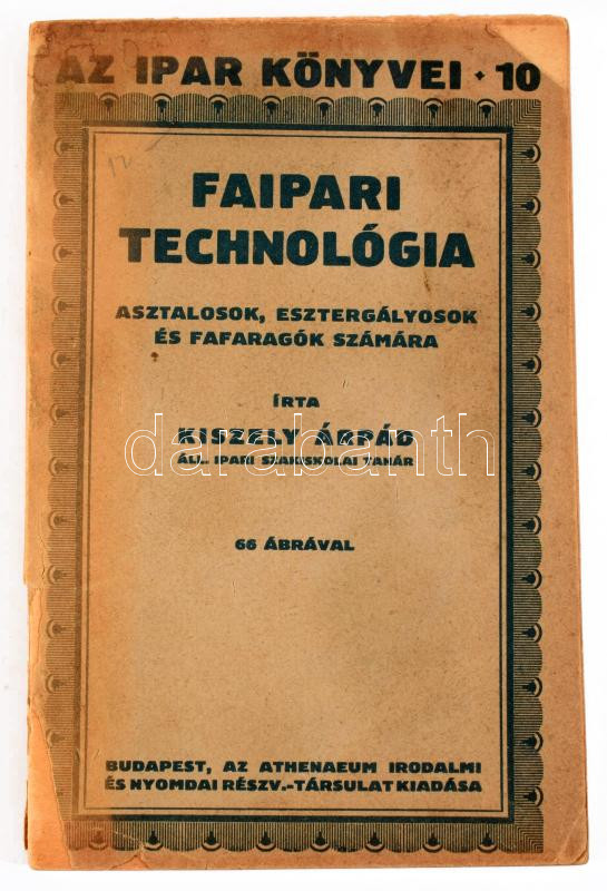 Kiszely Árpád: Faipari technológia. Az Ipar Könyvei 10. Bp., Athenaeum. 104p. Kiadói sérült papírkötés.
