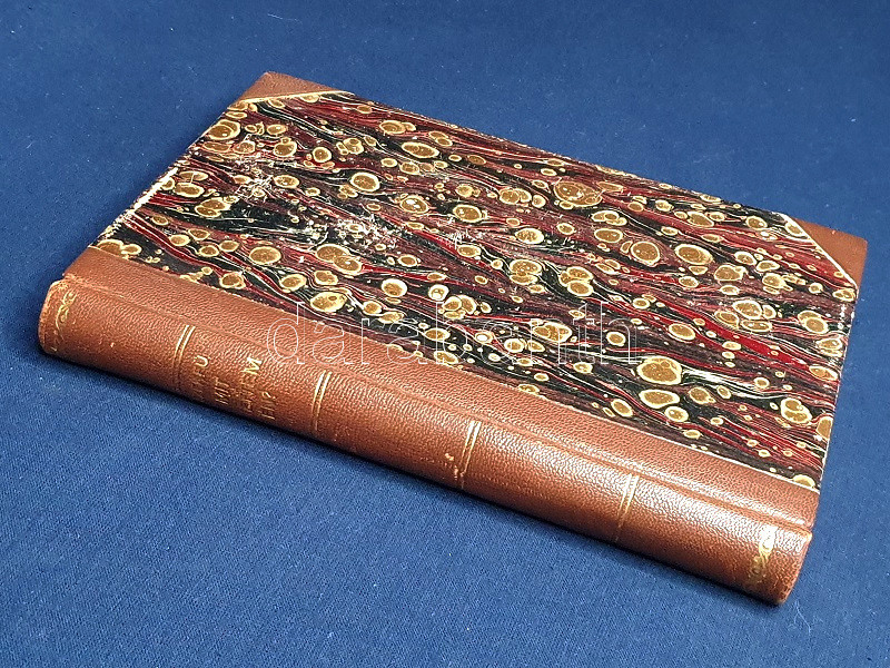 Aranyozott gerincű korabeli félbőr kötésben, az eredeti, enyhén foltos kiadói borítók bekötve. Jó példány.