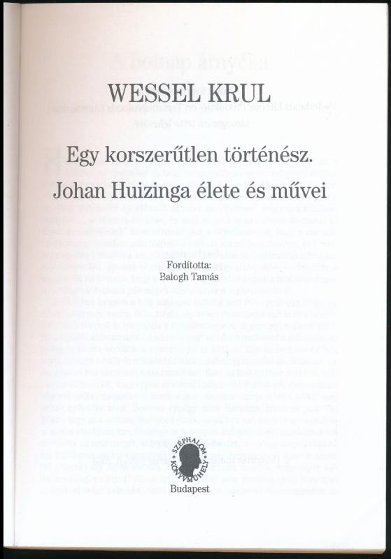 Wessel Krul: Egy korszerűtlen történész: Johan Huizinga élete és művei. Bp., 2003, Széphalom Könyvműhely. 239p. Kiadói papírkötés, jó állapotban.