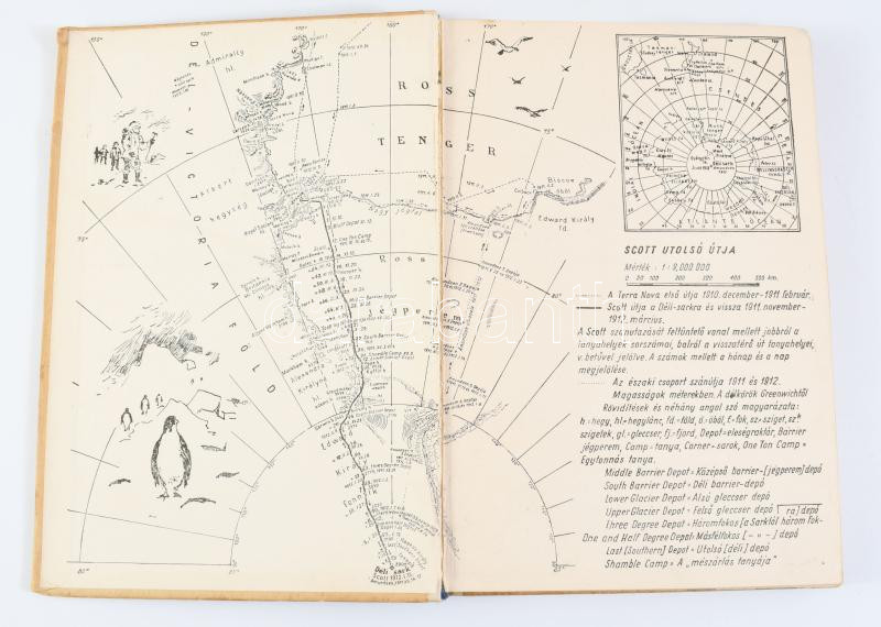 Scott utolsó útja. R. F. Scott kapitány naplója dél-sarki expedíciójáról. Bp., 1958, Móra. Kiadói félvászon-kötés, kopott, foltos borítóval.