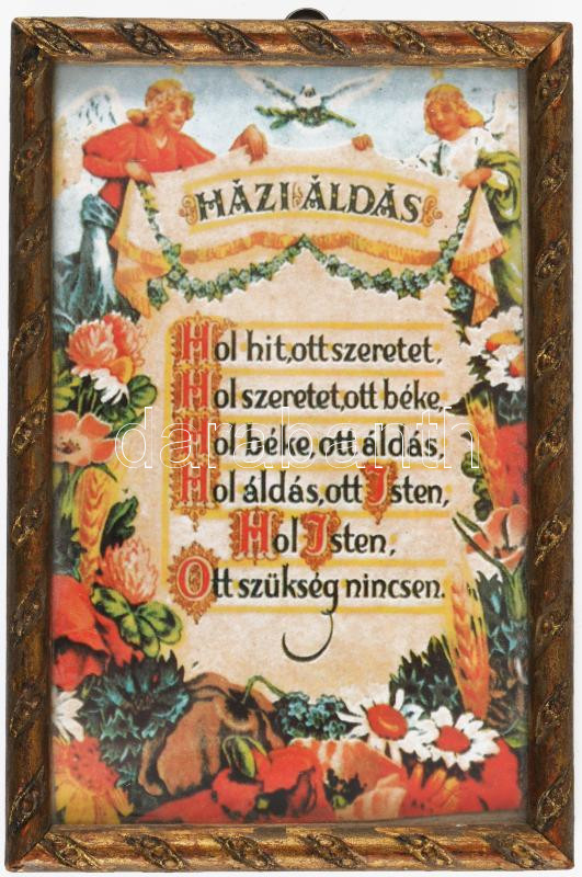 Régi házi áldás, üvegezett keretben, 14x9 cm