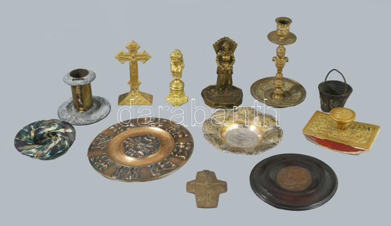 Vegyes réz tárgyak tételben tapper, gyetyatartók, feszület, stb