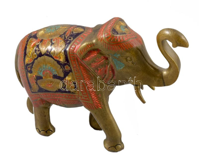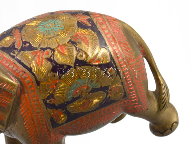 Zománcmintás bronz elefánt, 9,5x7 cm