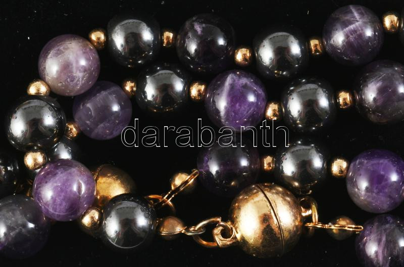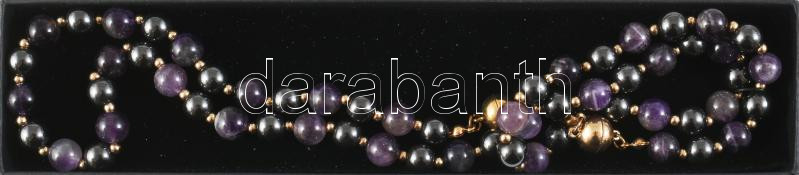 Leo Bernard nyaklánc, ametiszt és hematit szemekkel, díszdobozban