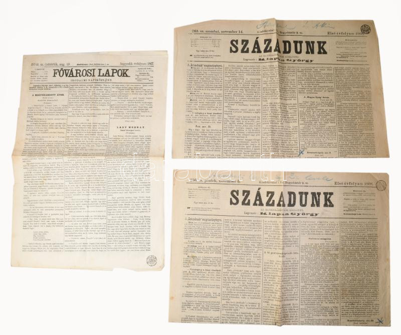 1867-68 3 db szignettás újság Fővárosi Lapok, Századunk.