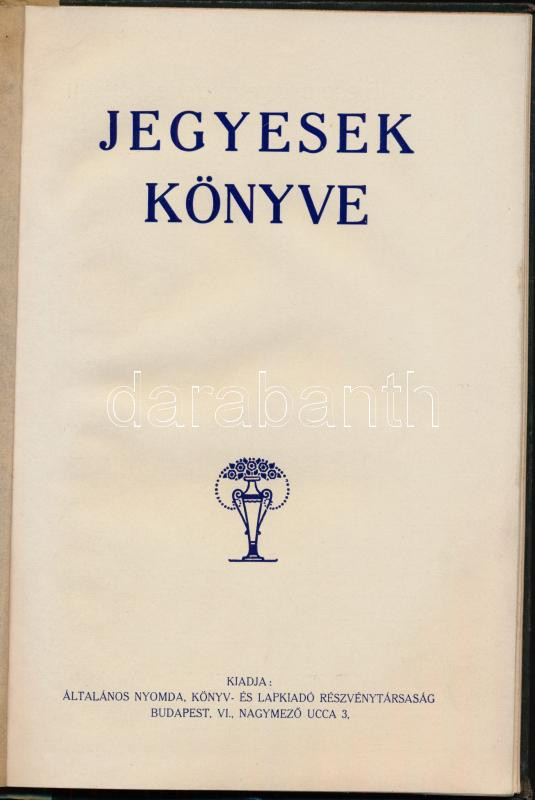 1928 Jegyesek könyve, kiadja: Általános Nyomda, Könyv- és Lapkiadó Rt. (Bp., Nagymező u. 3.), benne reklámokkal, félvászon-kötésben, jó állapotban