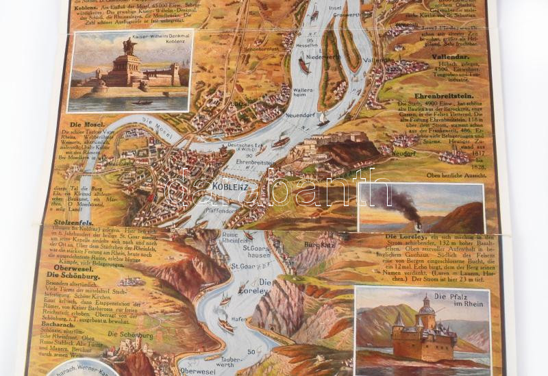 ca 1920 Relief Panorama des Rheins . / Panorama of the Rhine from Mainz to Cologne. 25x165 cm