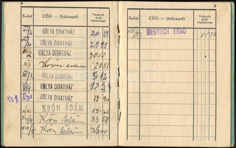 1934 "Túri vásár" kötelékébe tartozó mezőtúri cégek vásárlási igazoló könyvecskéje