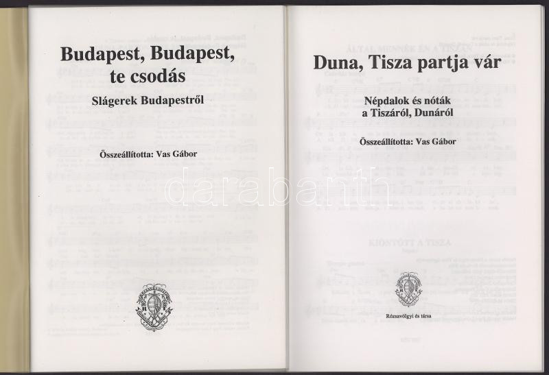 Budapest, Budapest te csodás. Slágerek Budapestről. + Duna, Tisza partja vár. Népdalok és nóták a Tiszáról, Dunáról. Kiadói papírkötés.