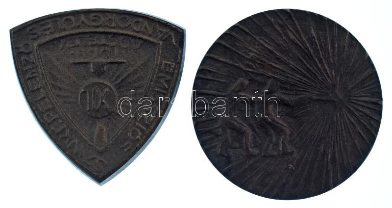 1968. "XI. Emissziós SzÃnképelemzÅ‘ Vándorgyűlés - Dunaújváros 1968" egyoldalas, öntött bronz plakett, hátoldalán gravÃrozva (82mm) + 1969. "XII. Emissziós SzÃnképelemzÅ‘ Vándorgyűlés - Aggtelek 1969" egyoldalas, öntött bronz plakett (79x79mm) T:AU