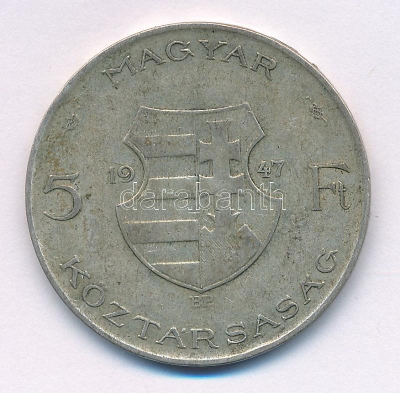 1947. 5Ft Ag "Kossuth" T:F patina Adamo F8.1