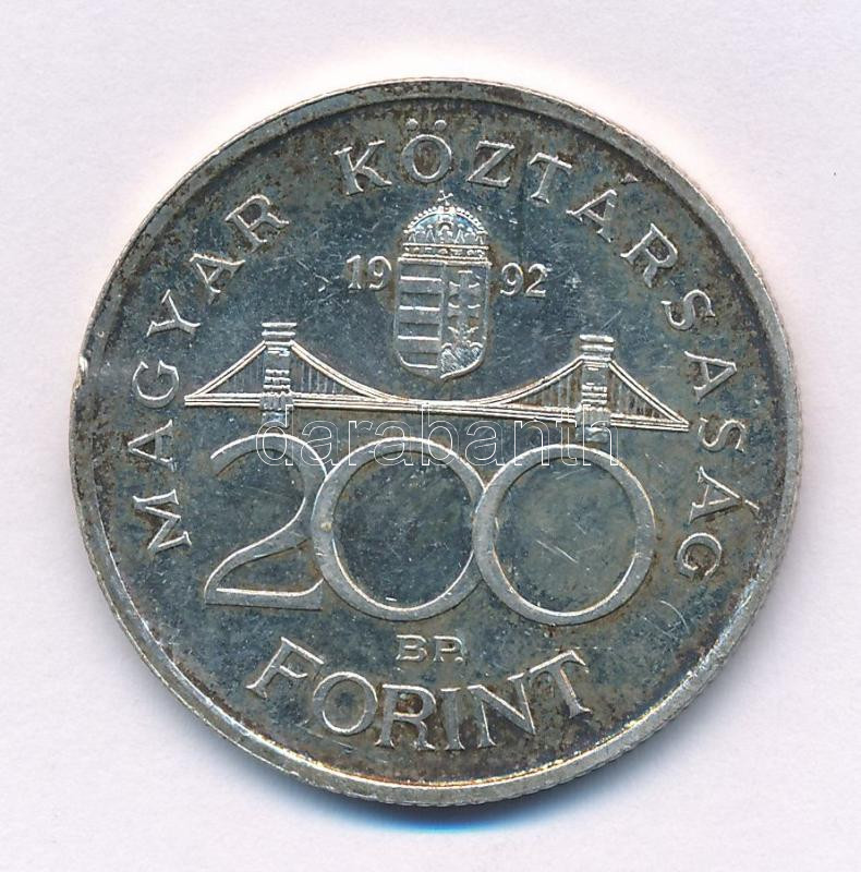 1992. 200Ft Ag "MNB" T:AU patina Adamo F13