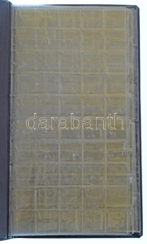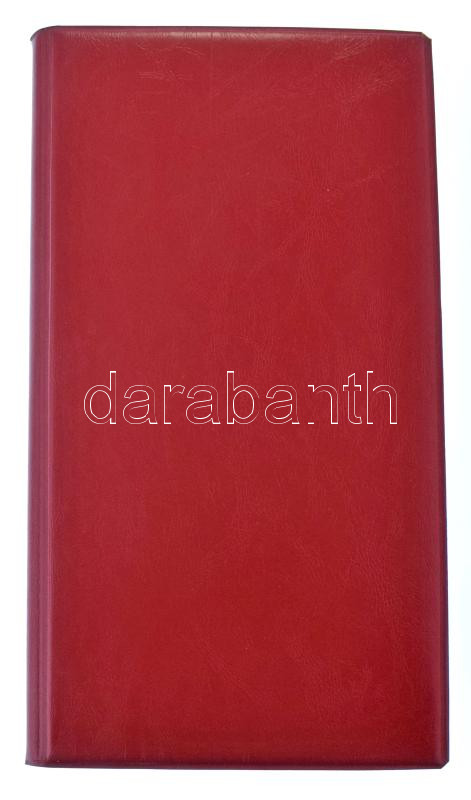 Használt, de jó állapotú piros műbőr berakó album, összesen 6db berakólappal (200db férőhellyel) három különféle méretű zsebbel