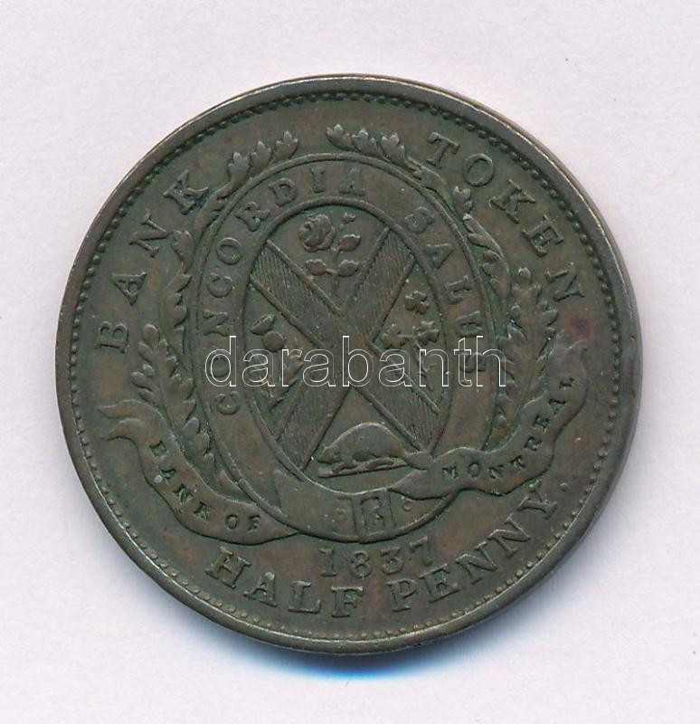 Nagy Britannia / Alsó Kanada brit provincia 1837. 1/2p Bank zseton T:XF patina