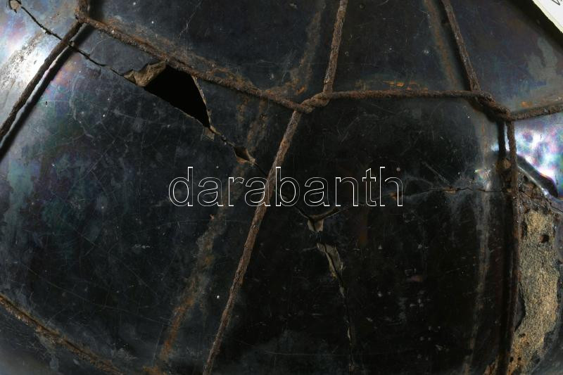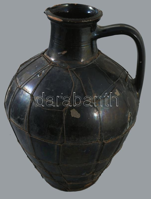 Vizes korsó. Mázas cserép, XIX. sz. drótozott, lyukkal. 42 cm